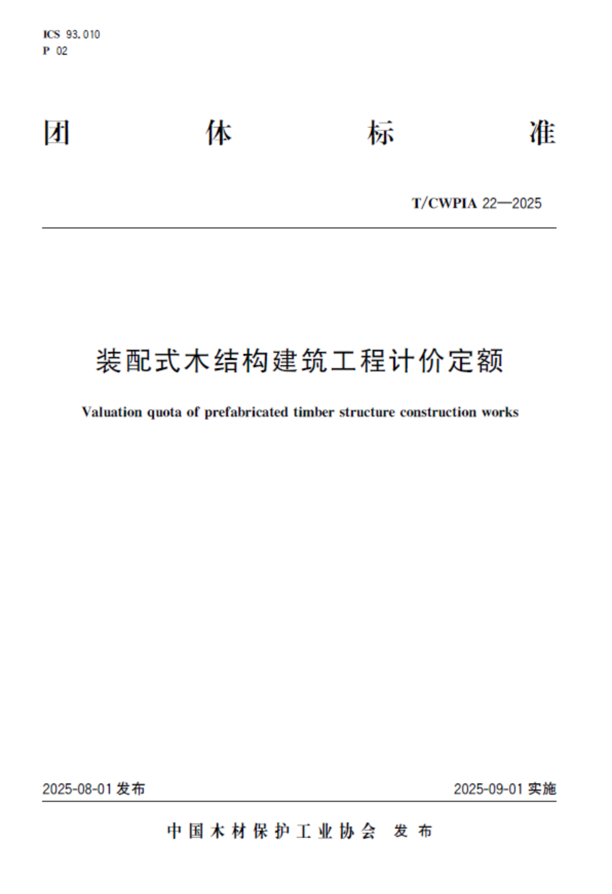 近日,由中國(guó)木材保護(hù)工業(yè)協(xié)會(huì)主導(dǎo),湖北聯(lián)投福漢綠建參編的TCWPIA 22-2025《裝配式木結(jié)構(gòu)建筑工程計(jì)價(jià)定額》團(tuán)體標(biāo)準(zhǔn)正式獲批發(fā)布。該標(biāo)準(zhǔn)出臺(tái),標(biāo)志著我國(guó)裝配式木結(jié)構(gòu)建筑領(lǐng)域在成本量化、計(jì)價(jià)規(guī)范和市場(chǎng)透明化方面邁出了至關(guān)重要的一步,為行業(yè)的健康、可持續(xù)發(fā)展奠定了堅(jiān)實(shí)的基石。